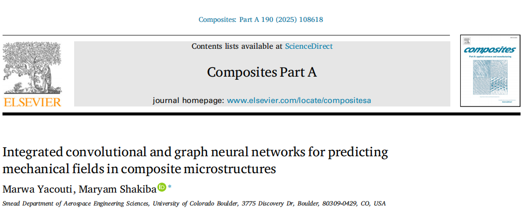 近日,在《Composites Part A》期刊发表了一篇由美国科罗拉多大学博尔德分校航空航天工程科学系的研究团队完成的有关基于集成卷积和图神经网络的复合材料微观结构力学场预测的研究成果。该研究提出了一种名为 CompINet 的深度学习框架,通过结合卷积神经网络和图神经网络,更准确、更高效地预测复合材料微观结构中的力学场分布,为复合材料力学分析和设计提供了新的思路和方法。论文标题为“Integrated convolutional and graph neural networks for predicting mechanical fields in composite microstructures"。